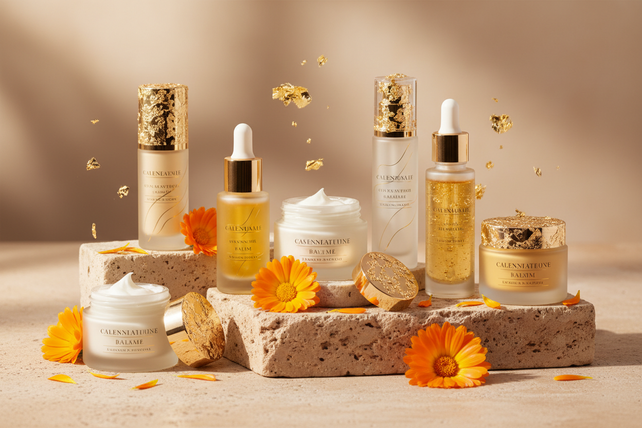 C’est au fil de ces recherches qu’elle découvre et expérimente les propriétés apaisantes exceptionnelles du calendula, devenu le cœur de son approche cosmétique.